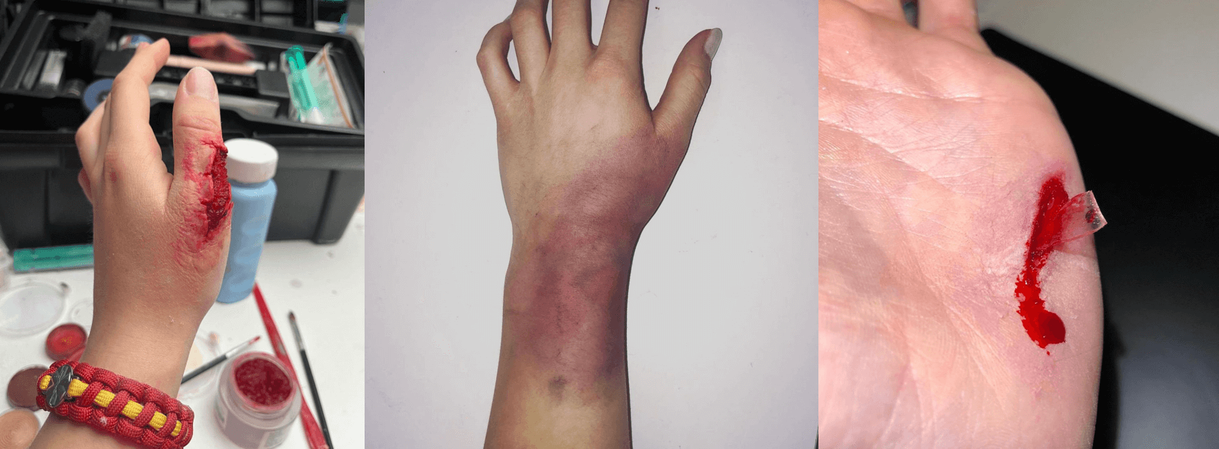 In diesem Workshop wird der Ernstfall möglichst realitätsnah dargestellt. Hier lernst du unter Anleitung, wie man mithilfe eines Schminksets unterschiedliche Arten von Wunden (wie Schürf-/Riss-/Platzwunden uvm.) schminkt.