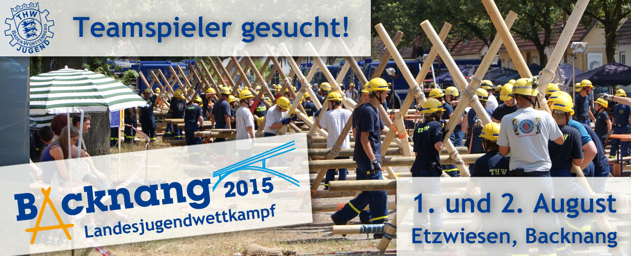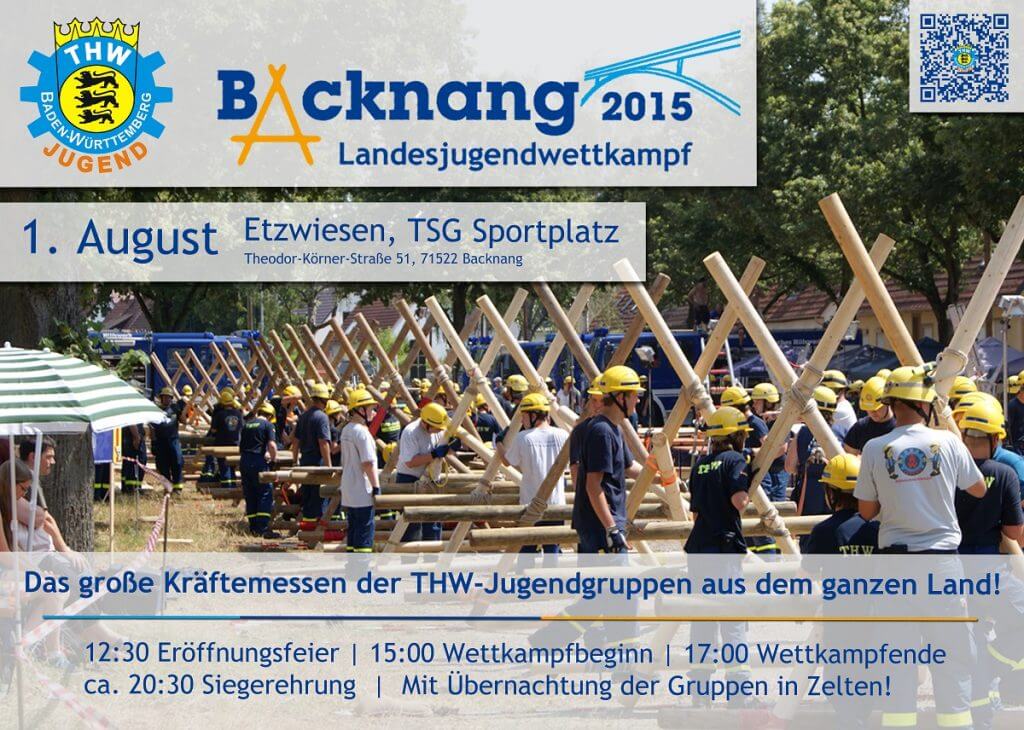 Alle zwei Jahre stellen die THW-Jugendgruppen in Baden-Württemberg ihr Können unter Beweis und demonstrieren den Ausbildungsstand und den Teamgeist in der Gruppe. In diesem Jahr findet der Landesjugendwettkampf 2015 am 1. August in Backnang statt.